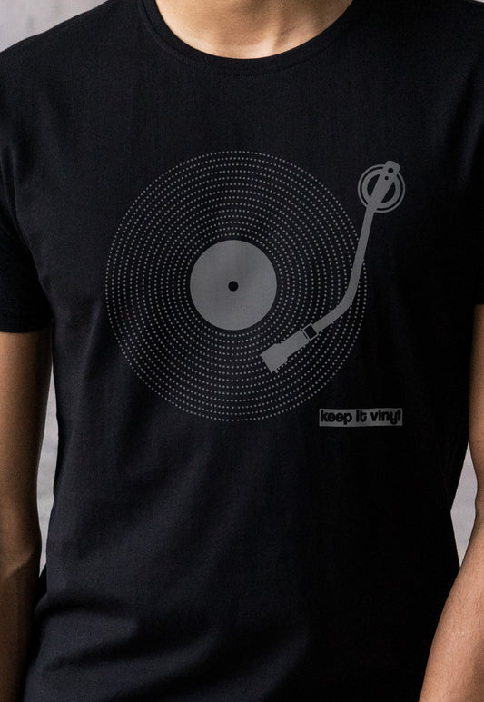 Keep It Vinyl T Shirt - Minimalist Drum and Bass DJ Deck Decks Turntable LP Vinyl Record Player Music Breakbeat Mens Womens Printed Tee Top