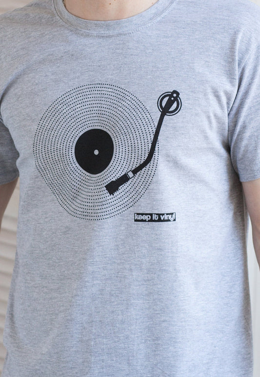 Keep It Vinyl T Shirt LP Record Player Turntable Minimalist DJ Deck Decks Drum and Bass Old School Retro 70s Mens Womens Screen Printed Tee
