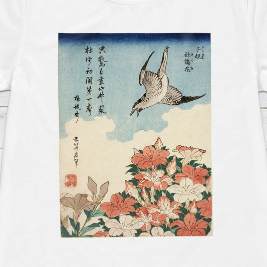 Japanese Ukiyo-e T Shirt Woodblock Art Katsushika Hokusai Flowers Bird Japan Traditional Kanji Calligraphy Womens Mens Graphic Printed Tee