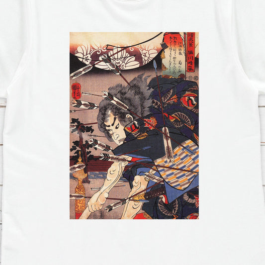 Japanese Ukiyo-e T Shirt Woodblock Art Utagawa Kuniyoshi Samurai Battle Arrow Japan Martial Arts Calligraphy Womens Mens Graphic Printed Tee