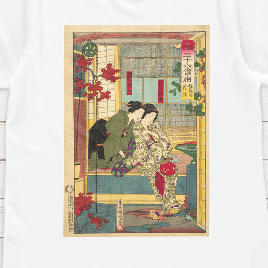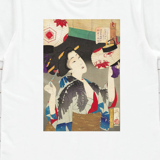 Japanese Ukiyo-e T Shirt Woodblock Art Toyohara Kunichika Tokyo Geisha Geiko Maiko Japan Kanji Calligraphy Womens Mens Graphic Printed Tee