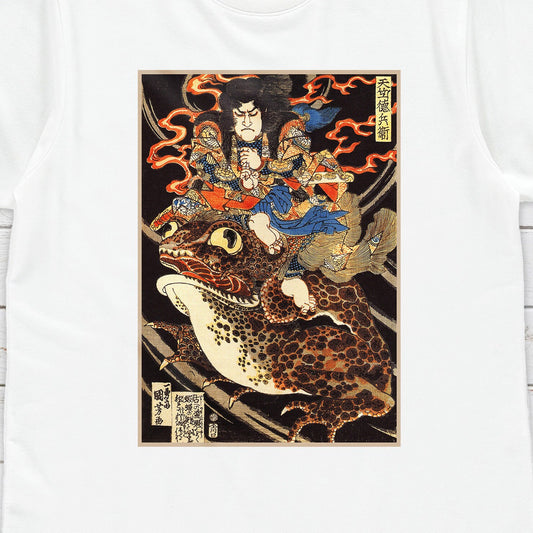 Japanese Ukiyo-e T Shirt Woodblock Art Utagawa Kuniyoshi Monster Ghost Yokai Toad Frog Samurai Japan Calligraphy Womens Mens Printed Tee Top