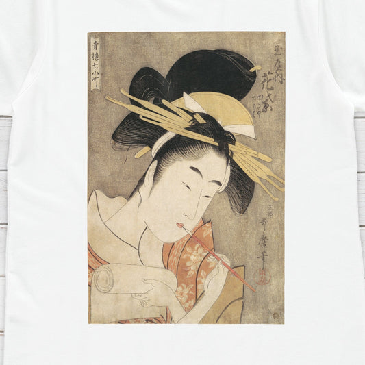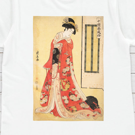Japanese Ukiyo-e T Shirt Woodblock Art Kitagawa Utamaro Kyoto Geisha Geiko Maiko Japan Kanji Calligraphy Womens Mens Graphic Printed Tee Top