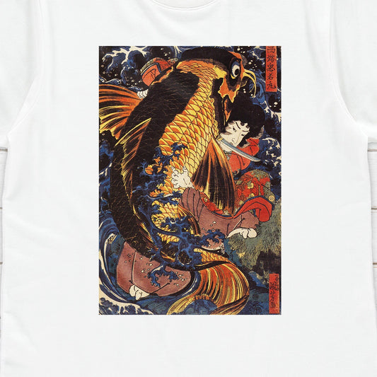Japanese Ukiyo-e T Shirt Woodblock Art Utagawa Kuniyoshi Monster Koi Carp Samurai Monk Warrior Japan Calligraphy Womens Mens Printed Tee Top