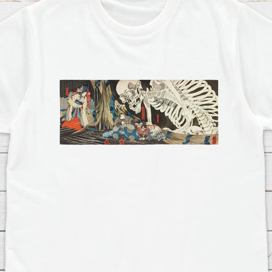 Japanese Ukiyo-e T Shirt Woodblock Art Utagawa Kuniyoshi Mitsukuni and the Skeleton Specter Tryptych Japan Calligraphy Women Men Printed Tee