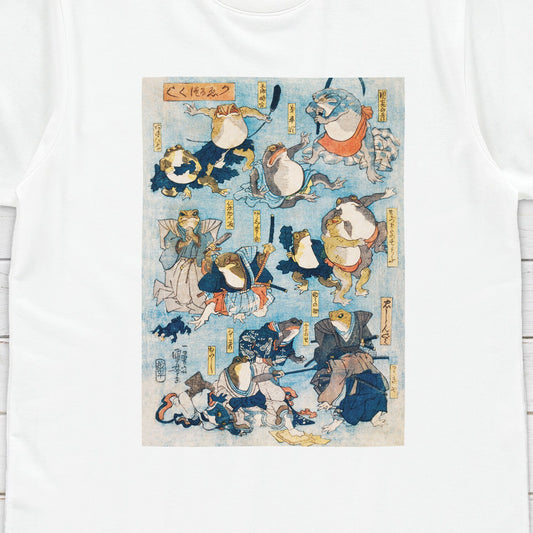 Japanese Ukiyo-e T Shirt Woodblock Art Samurai Ninja Frogs Kabuki Toad Tattoo Funny Cute Kawaii Calligraphy Womens Mens Graphic Printed Tee