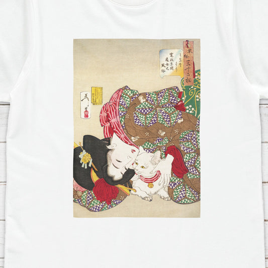 Japanese Ukiyo-e T Shirt Woodblock Art Yoshitoshi Kyoto Geisha Maiko Cat Neko Tattoo Beautiful Japan Calligraphy Womens Mens Printed Tee Top