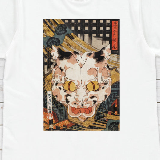 Japanese Ukiyo-e T Shirt Woodblock Art Utagawa Yoshifuji Mystery Cat Monster Ghost Yokai Horror Japan Calligraphy Womens Mens Printed Tee