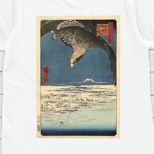 Japanese Ukiyo-e T Shirt Woodblock Art Utagawa Hiroshige Japan Hawk Falcon Traditional Kanji Calligraphy Womens Mens Graphic Printed Tee Top