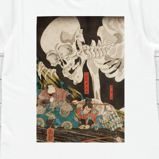 Japanese Ukiyo-e T Shirt Woodblock Art Utagawa Kuniyoshi Mitsukuni and the Skeleton Specter Japan Kanji Calligraphy Womens Mens Printed Tee