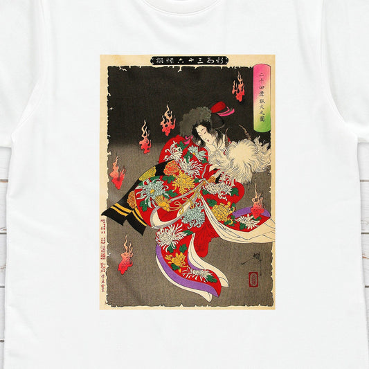 Japanese Ukiyo-e T Shirt Woodblock Art Yoshitoshi Kitsune Fox Ghost Geisha Maiko Princess Japan Calligraphy Womens Mens Graphic Printed Tee