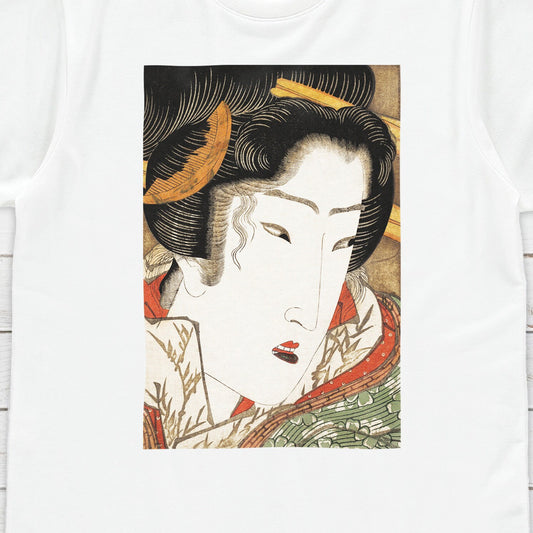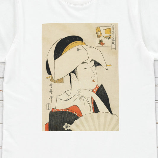 Japanese Ukiyo-e T Shirt Woodblock Art Kitagawa Utamaro Geisha Maiko Elegant Cute Kimono Japan Calligraphy Womens Mens Graphic Printed Tee
