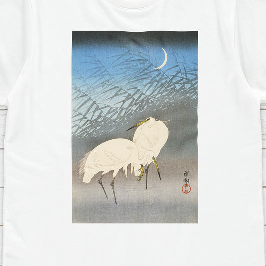 Japanese Ukiyo-e T Shirt Woodblock Art Ohara Koson Shoson Flowers Bird Egrets Traditional Kanji Calligraphy Womens Mens Graphic Printed Tee