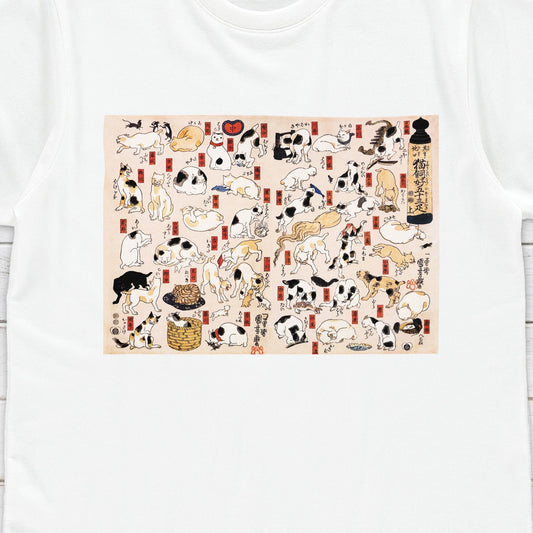 Japanese Ukiyo-e T Shirt Woodblock Art Utagawa Kuniyoshi Cats Tokaido Tattoo Neko Funny Kawaii Calligraphy Womens Mens Graphic Printed Tee