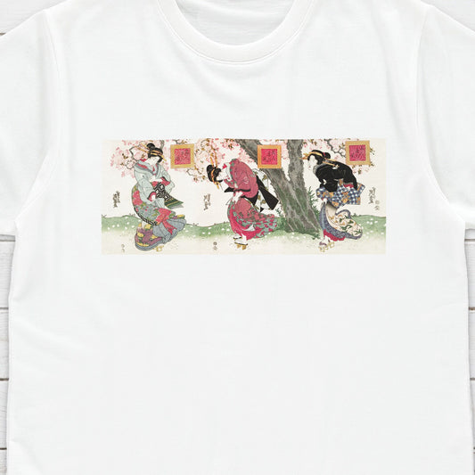 Japanese Ukiyo-e T Shirt Woodblock Art Keisai Eisen Kyoto Geisha Maiko Tryptych Sakura Tattoo Beautiful Calligraphy Womens Mens Printed Tee