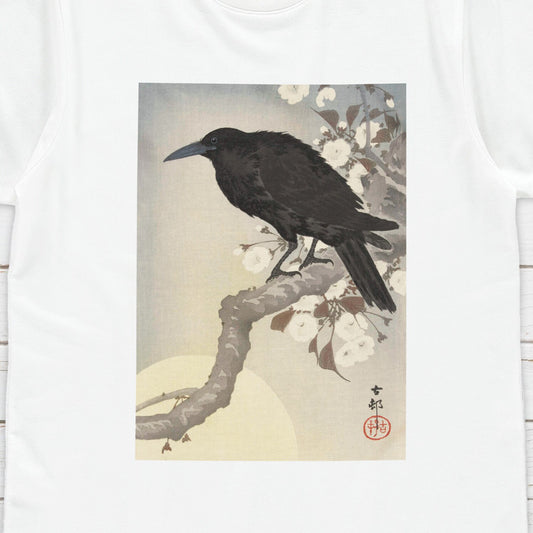 Japanese Ukiyo-e T Shirt Woodblock Art Ohara Koson Shoson Crow Raven Rook Bird Tattoo Moon Kanji Calligraphy Womens Mens Graphic Printed Tee