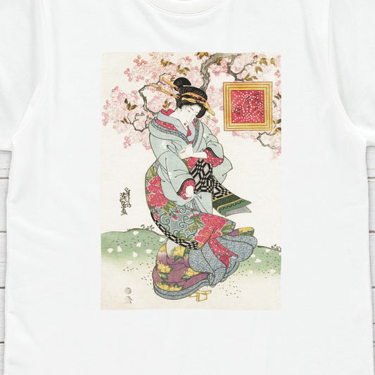 Japanese Ukiyo-e T Shirt Woodblock Art Keisai Eisen Kyoto Geisha Maiko Sakura Tattoo Beautiful Japan Calligraphy Womens Mens Printed Tee Top