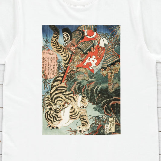 Japanese Ukiyo-e T Shirt Woodblock Art Utagawa Kunisada Samurai Bushido Tiger Japan Martial Arts Calligraphy Womens Mens Graphic Printed Tee