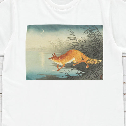 Japanese Ukiyo-e T Shirt Woodblock Art Ohara Koson Shoson Fox Kitsune Moon Traditional Kanji Calligraphy Womens Mens Graphic Printed Tee