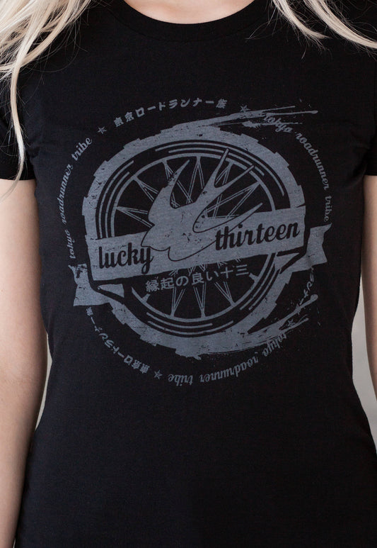 Japanese Japan Tokyo Roadrunner Tribe Harajuku Kaminari OraOraKei Retro Vintage Japan Writing Kanji Printed Women's Tee Top