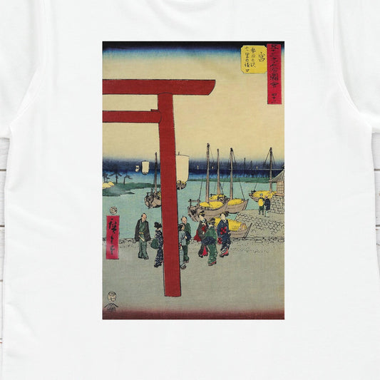 Japanese Ukiyo-e T Shirt Woodblock Art Hiroshige Torii Gates Shinto Shrine Japan Calligraphy Print Gifts Womens Mens Graphic Printed Tee Top