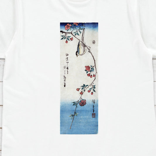 Japanese Ukiyo-e T Shirt Woodblock Art Hiroshige Flowers Bird Sakura Japan Traditional Kanji Calligraphy Womens Mens Graphic Printed Tee