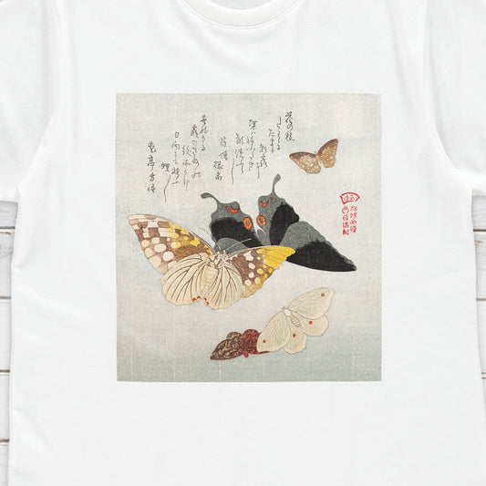 Japanese Ukiyo-e T Shirt Woodblock Art Flowers Butterflies Butterfly Japan Traditional Kanji Calligraphy Womens Mens Graphic Printed Tee Top