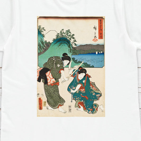 Japanese Ukiyo-e T Shirt Woodblock Art Hiroshige Six Jewel Rivers Japan Kanji Calligraphy Pretty Print Gifts Womens Mens Graphic Printed Tee