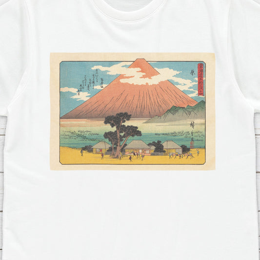 Japanese Ukiyo-e T Shirt Woodblock Art Hiroshige Mount Fuji Mountain Hara Station 14 Tokaido Japan Kanji Calligraphy Womens Mens Printed Tee