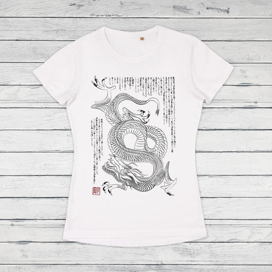 Japanese Dragon Calligraphy T Shirt Japan Chinese Ryuu Anime Manga Traditional Art Ukiyo-e Naga Yoga Martial Arts Womens Girls Printed Tee