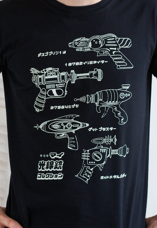 Japanese T Shirt Ray Blaster Phaser Laser Gun Retro Anime Manga Science Fiction Space Geek Larp Spaceship Sci-Fi Mens Womens Printed Tee Top