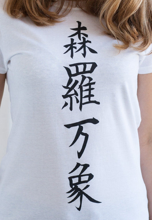 Japanese T Shirt - Universe Japan Writing Calligraphy Anime Manga Traditional Yoga Zen Kanji Kawaii Gifts For Her Screen Printed Women's Tee