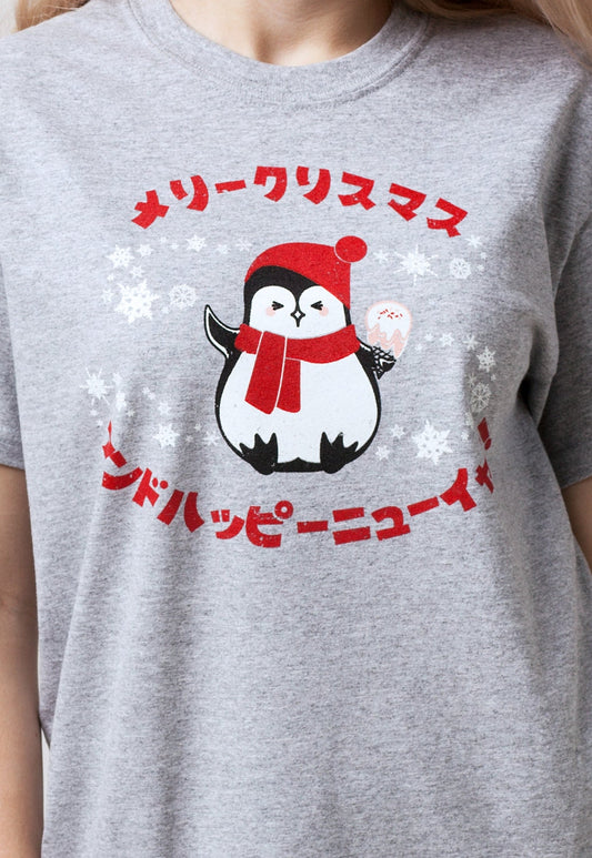 Japanese T Shirt Kawaii Christmas Penguin Santa Japan Anime Manga Holiday Xmas Happy New Year Cute Snowflake Printed Mens Womens Printed Tee