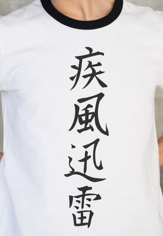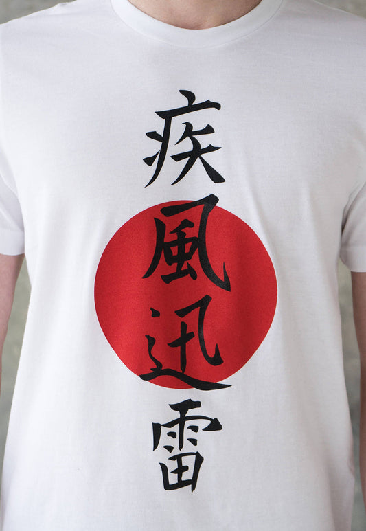 Japanese T Shirt - Lightning (Shippu Jinrai) - Japanese Calligraphy Writing Kanji Martial Arts Gym Yoga Anime Manga Screen Printed Tee Top