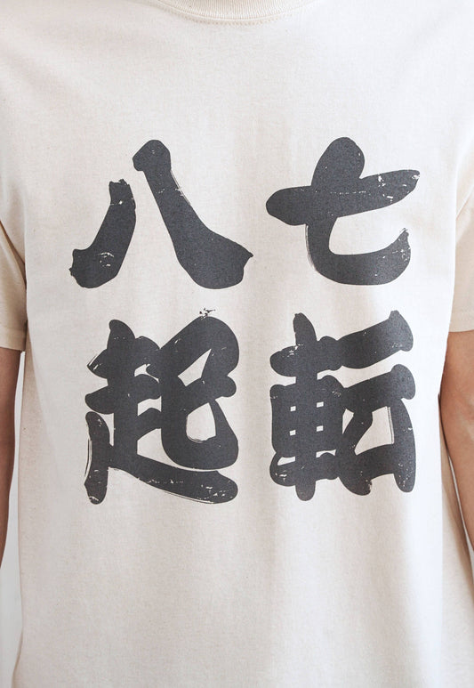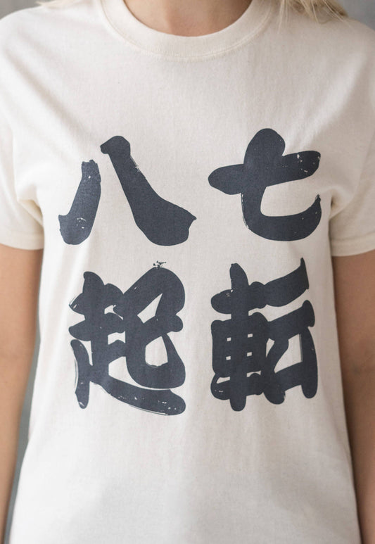 Japanese T Shirt - Shichiten Hakki/ Nanakorobi Yaoki - Japan Calligraphy Yoga Positive Motivational Inspirational Screen Printed Gym Tee Top