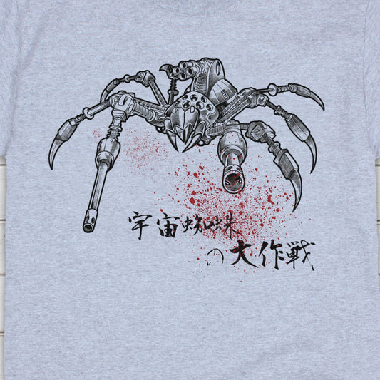 Japanese Robot Spider T Shirt Calligraphy Japan Anime Manga Print Monster Horror Samurai Kaiju Geek Sci Fi B Movie Mens Womens Printed Tee