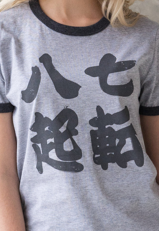 Japanese Ringer T Shirt Shichiten Hakki Japan Yoga Gym Inspirational Positive Motivational Graphic Printed Womens Mens Screen Printed Tee
