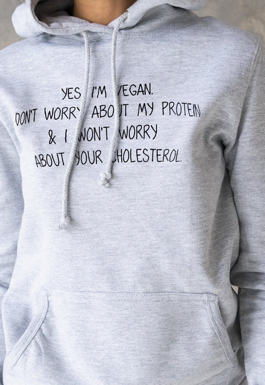 Vegan Hoodie Don't Worry About My Protein Slogan Funny Positive Herbivore Slogan Be Kind AF Womens Grey Printed Hooded Top Jumper Sweatshirt