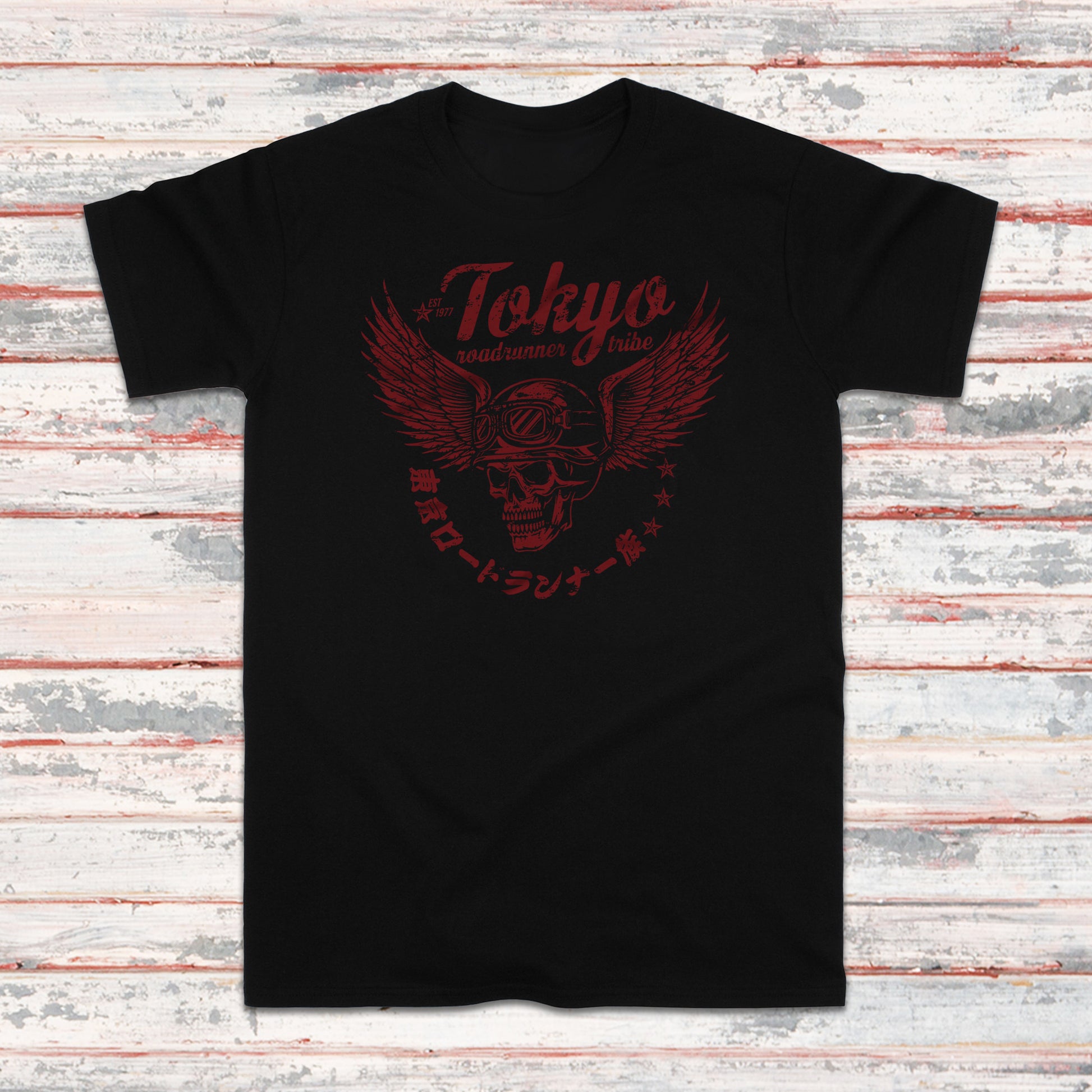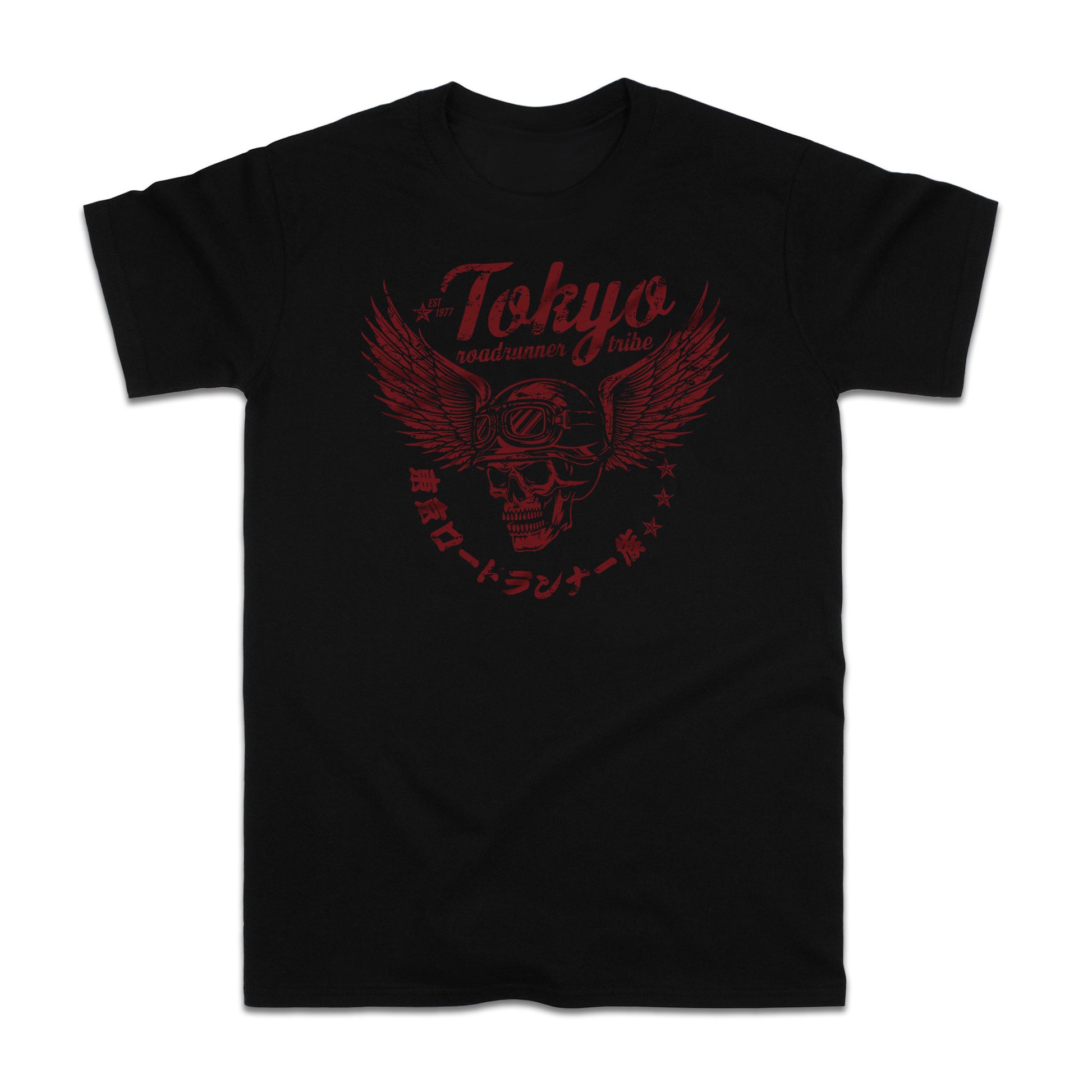 Tokyo Roadrunner Tribe T-Shirt – Japanese Winged Biker Skull Design (Unisex)