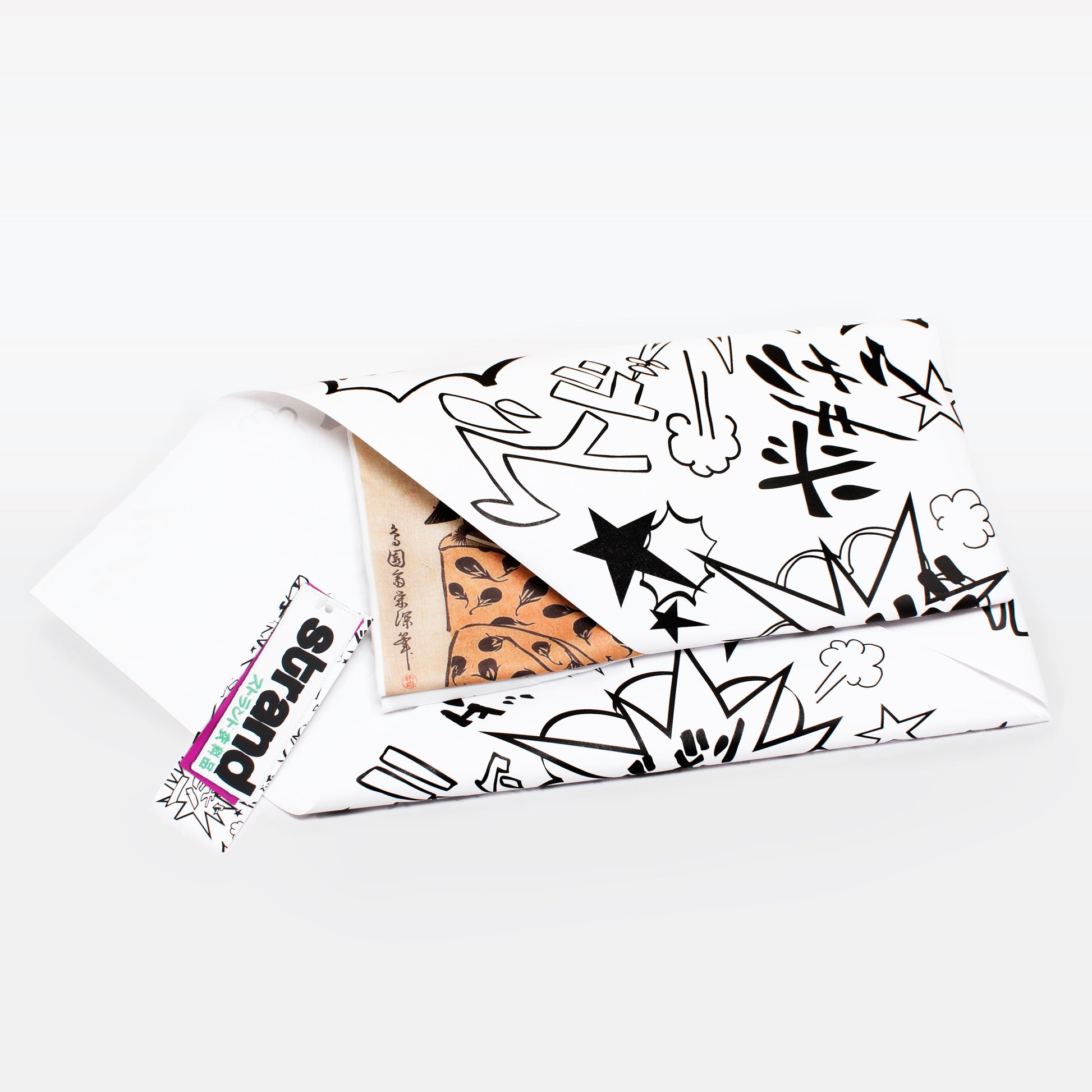 All T Shirts we sell are presented in our custom wrapping paper, hand-wrapped “Japanese wrapping style” (naname tsutsumi). There’s no price on the swing/price tag.